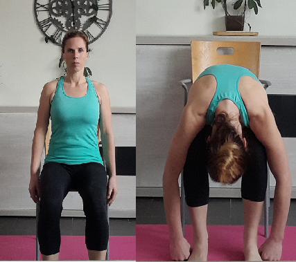 **Tenez-vous derrière votre chaise, de manière à avoir suffisamment d’espace pour avoir les bras tendus lors de la flexion avant.